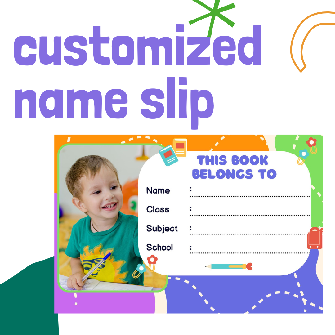 Customized Name Slip, School Sticker Label, Naming Slip with Your Kids Picture for School Book